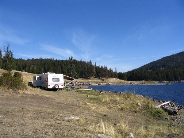 Most of the shoreline of this lake is on private land but so far, anglers and campers have been kindly permitted to launch and camp at this lake.